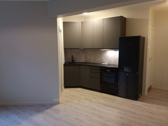 Leiligheten på Økernveien 5A i Oslo har gjennomgått en fullstendig renovering, inkludert endringer i planen, fullstendig gipsing og maling, nytt gulvbelegg og installasjon av et nytt kjøkken.