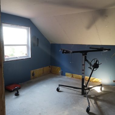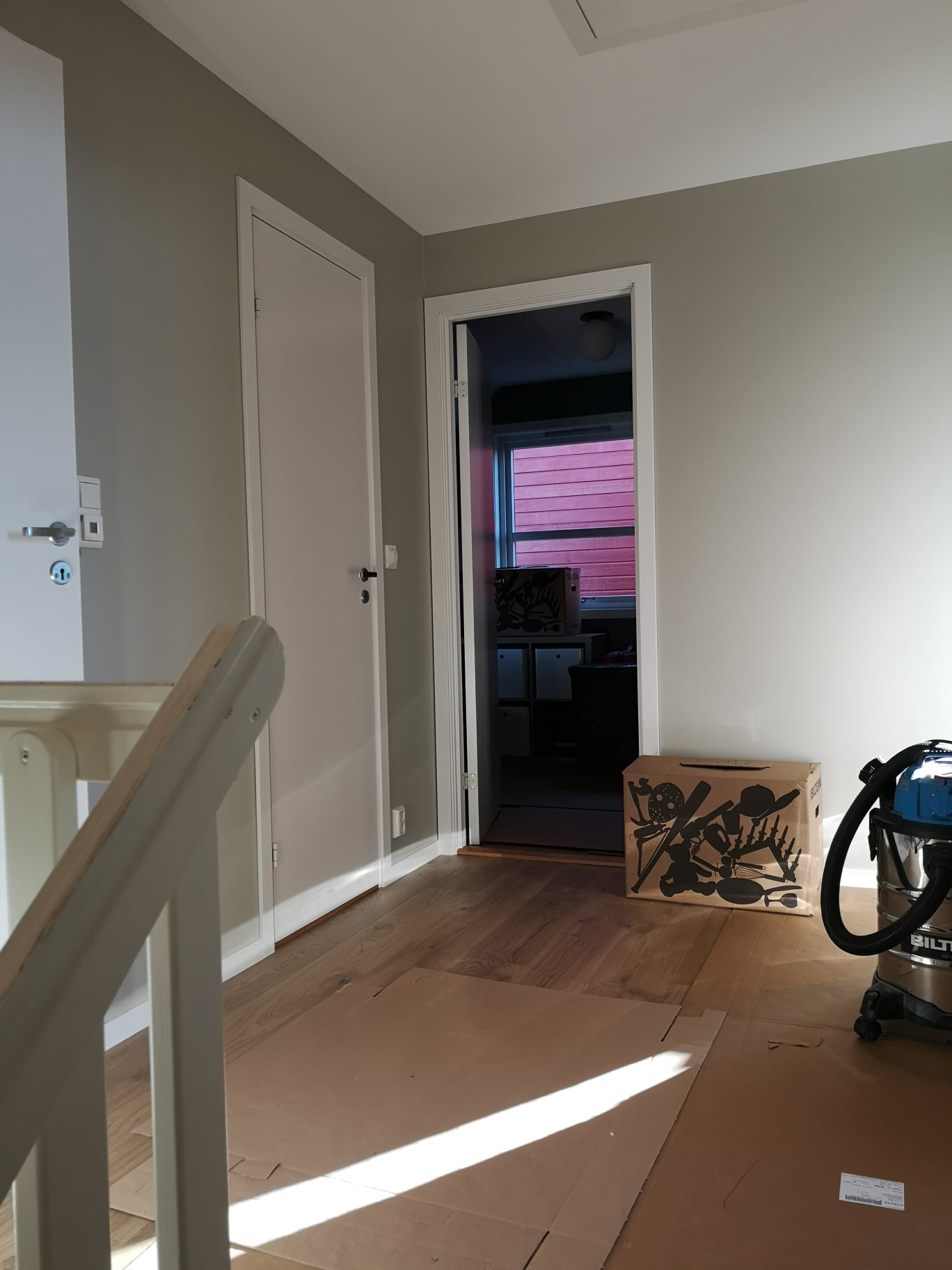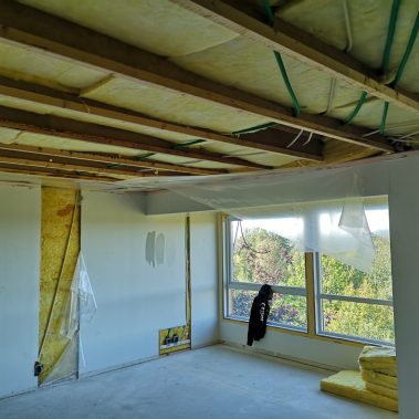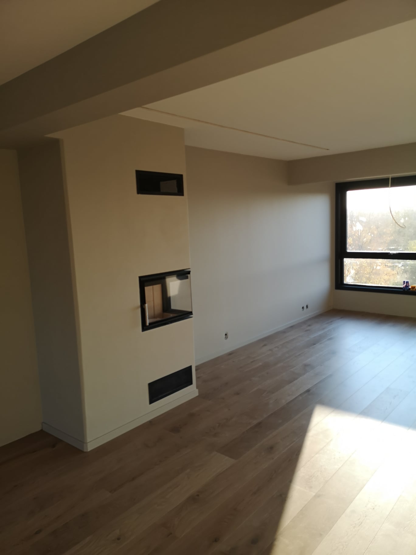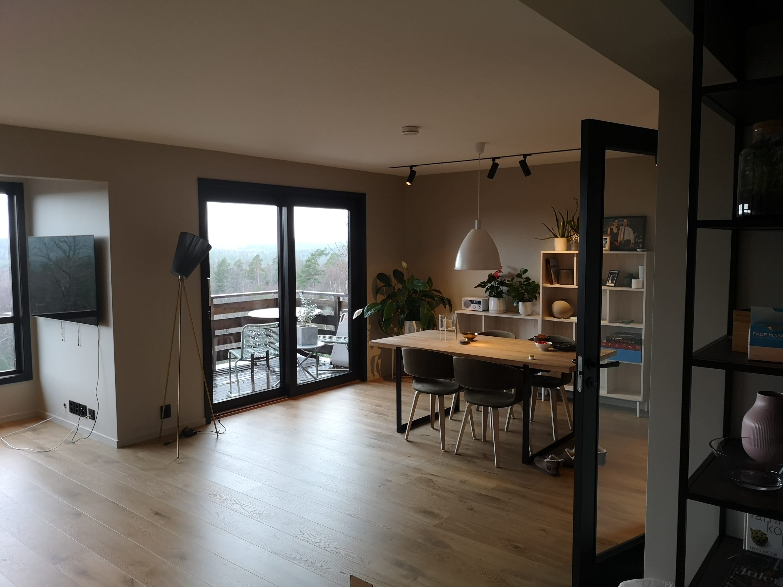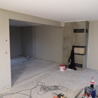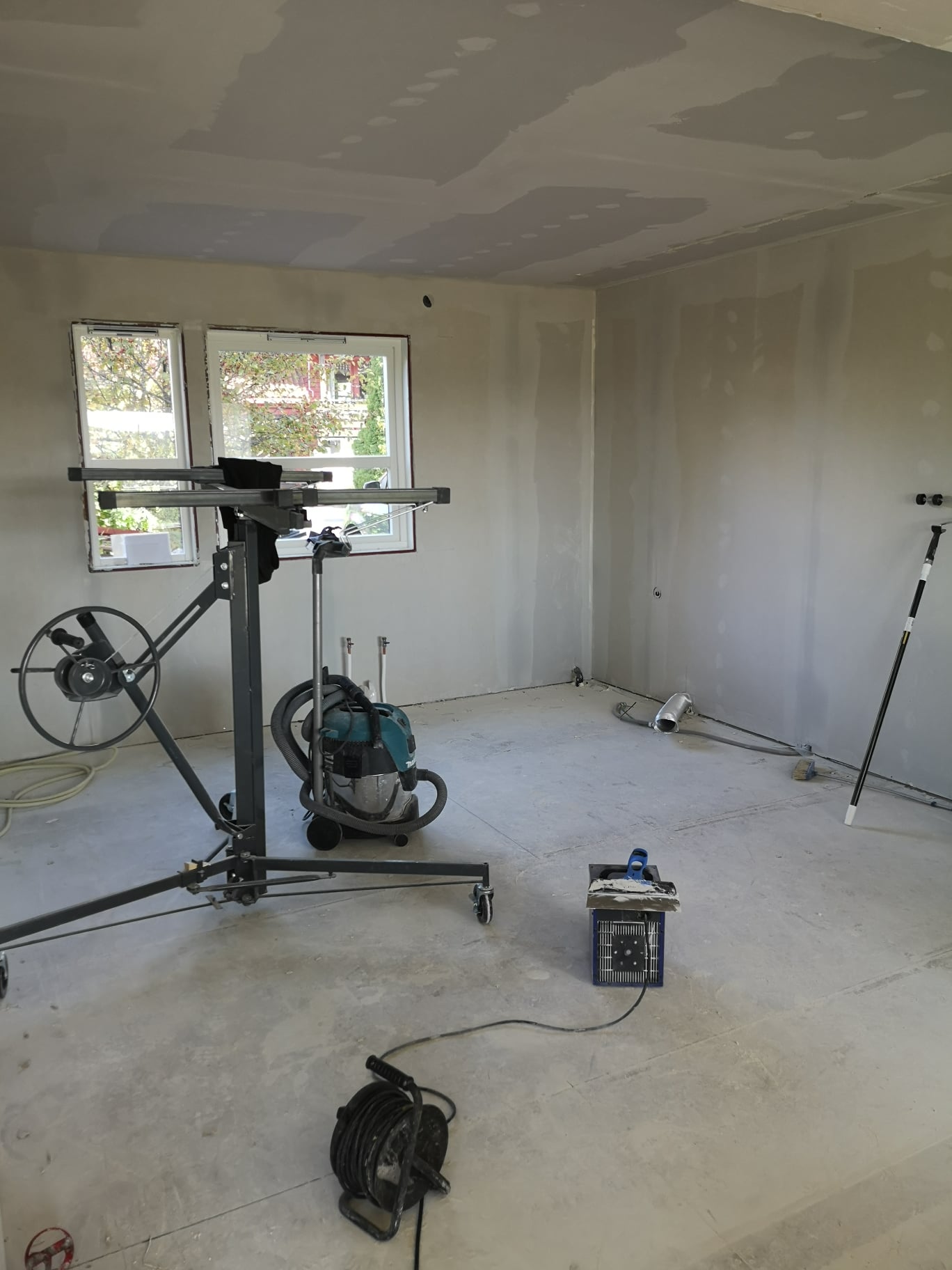 Huset på Flåtestadveien i Oppegård har gjennomgått en renovering, inkludert installasjon og gipsing av vegger, maling, nytt gulvbelegg, og installasjon av skyvedør.