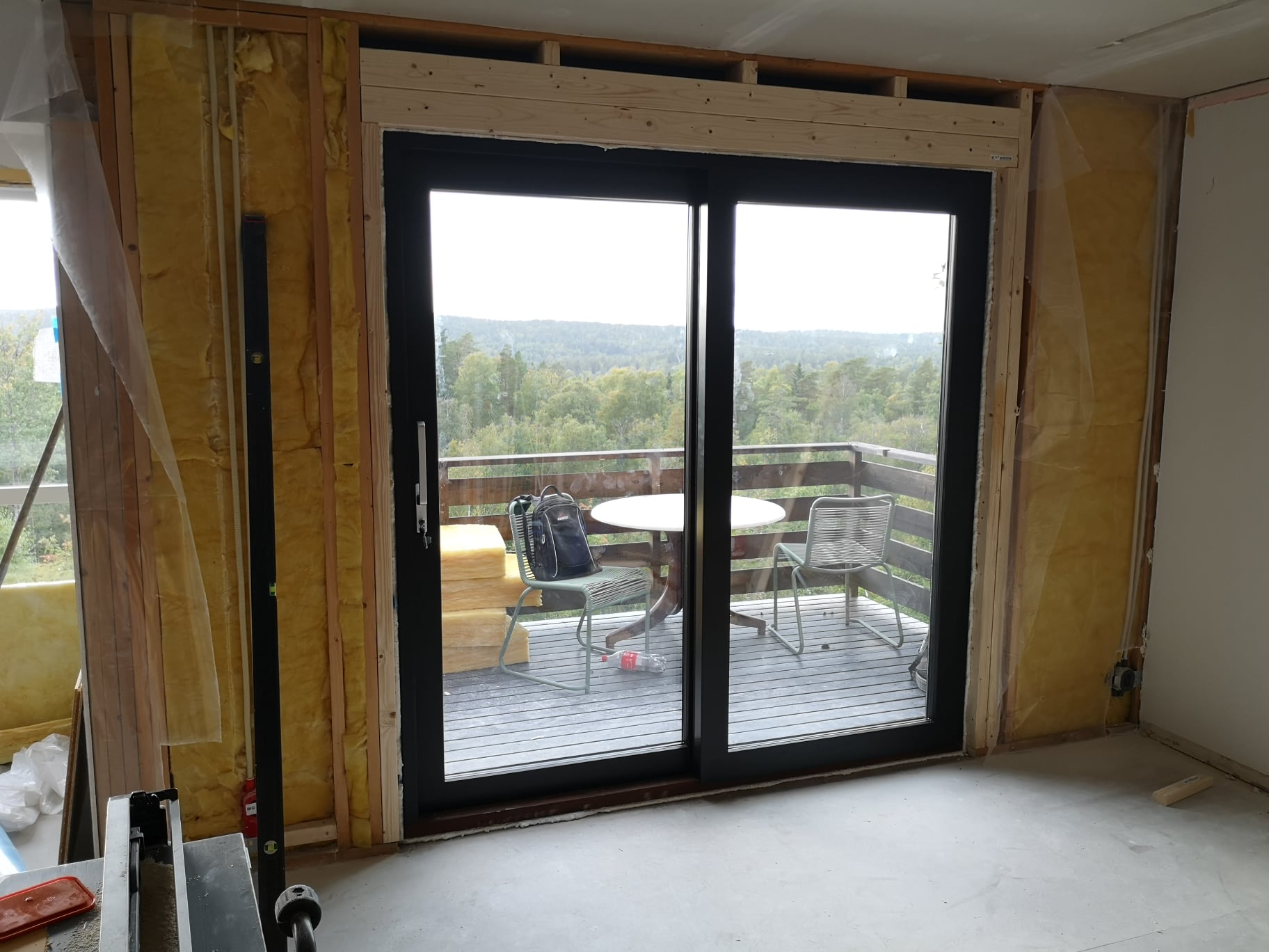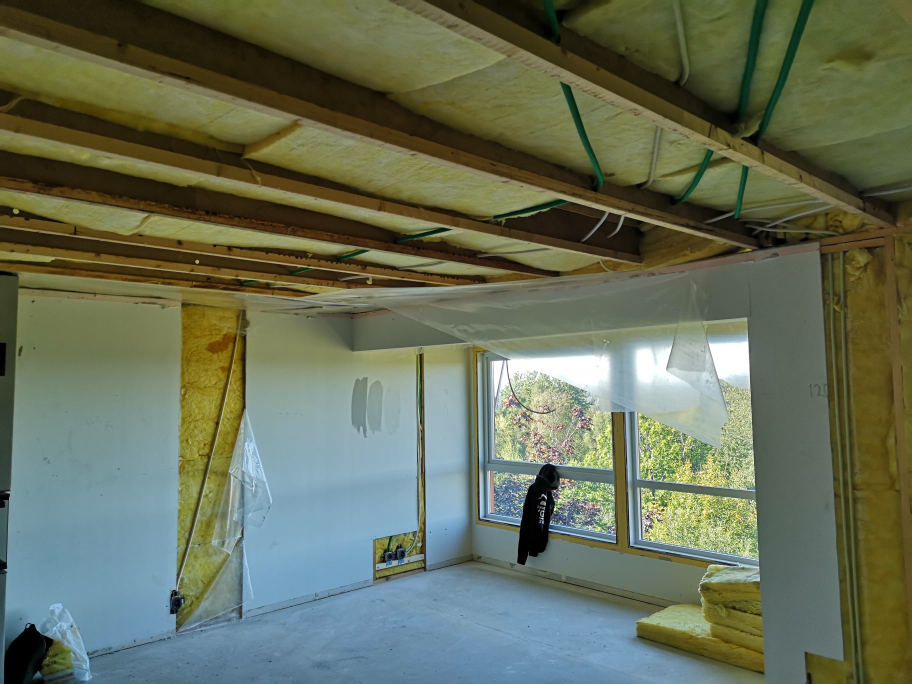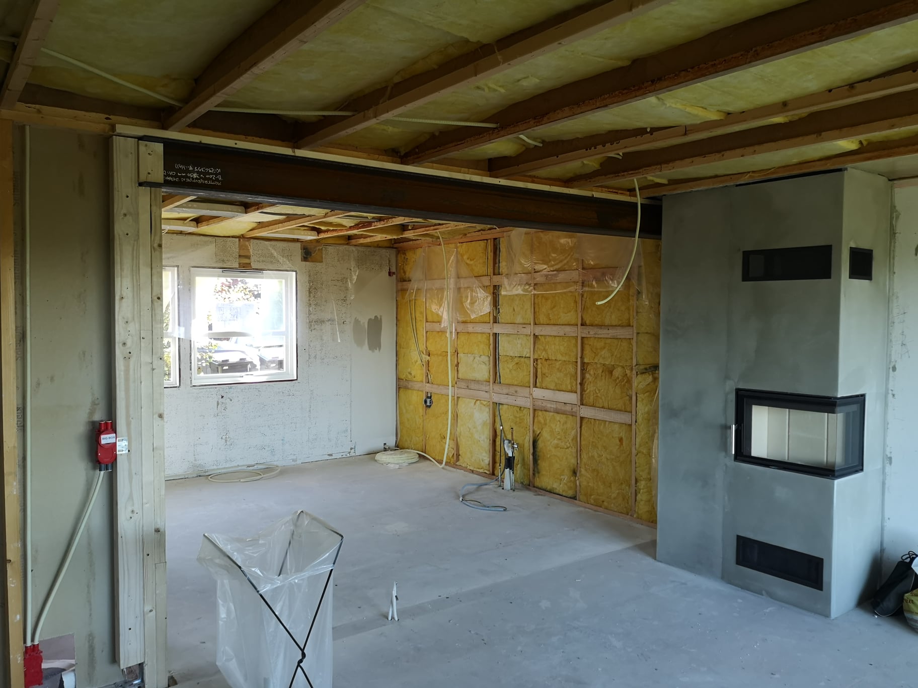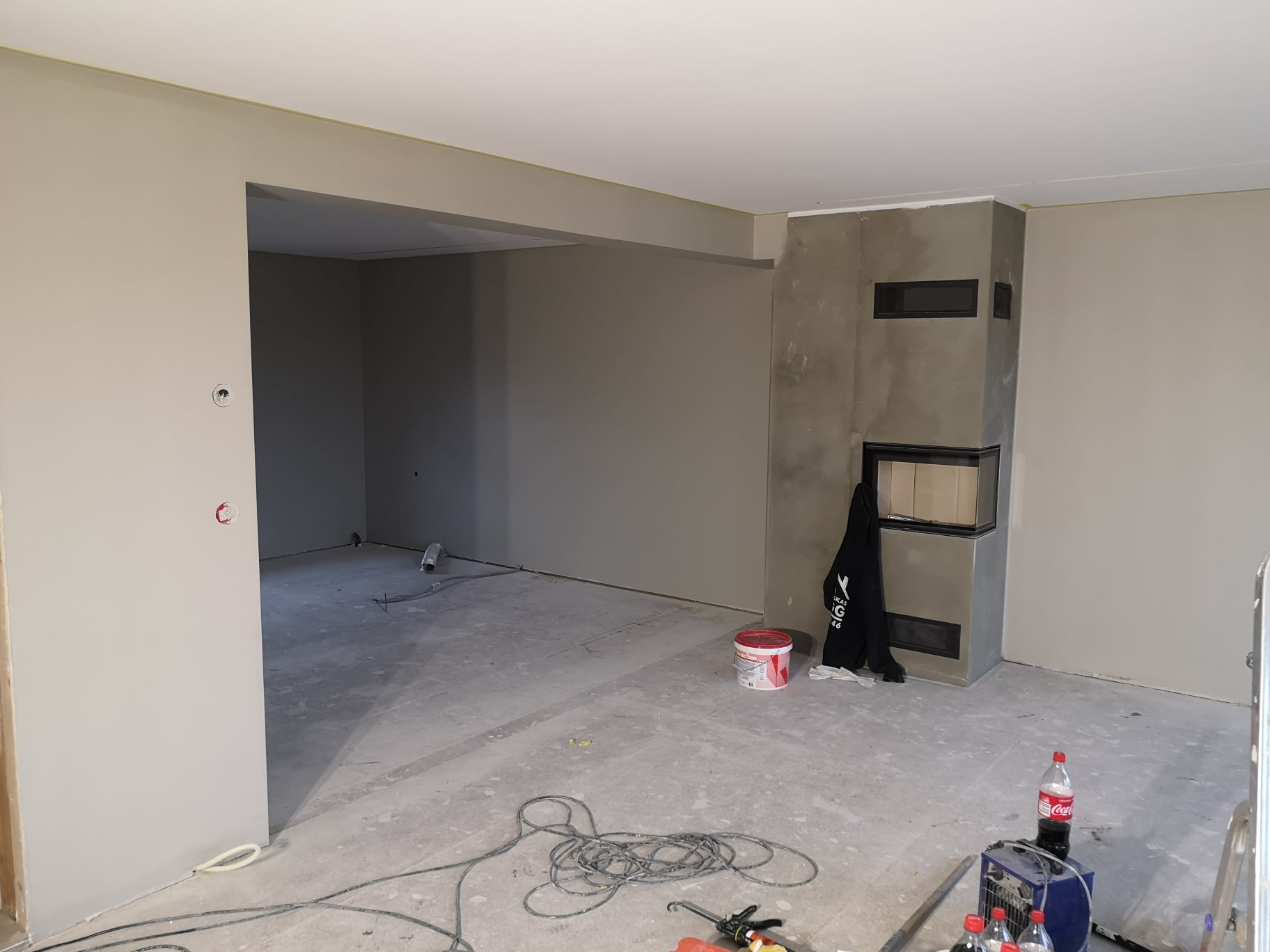 Huset på Flåtestadveien i Oppegård har gjennomgått en renovering, inkludert installasjon og gipsing av vegger, maling, nytt gulvbelegg, og installasjon av skyvedør.